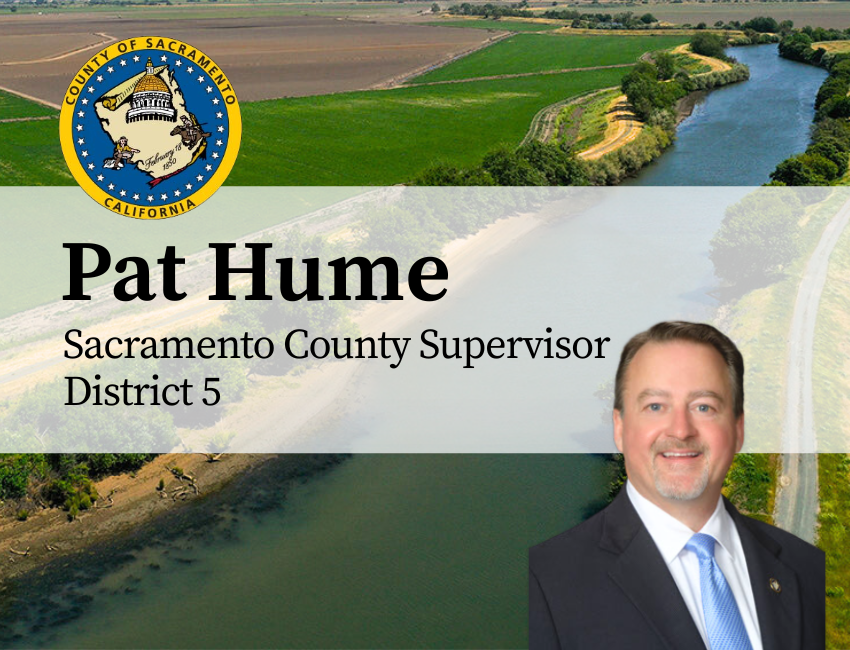 I value your input and recommendations. Please contact my office if you have any questions, are in need of assistance, or simply have a recommendation. You can reach us directly at (916) 874-5465 or PatHume@saccounty.gov
